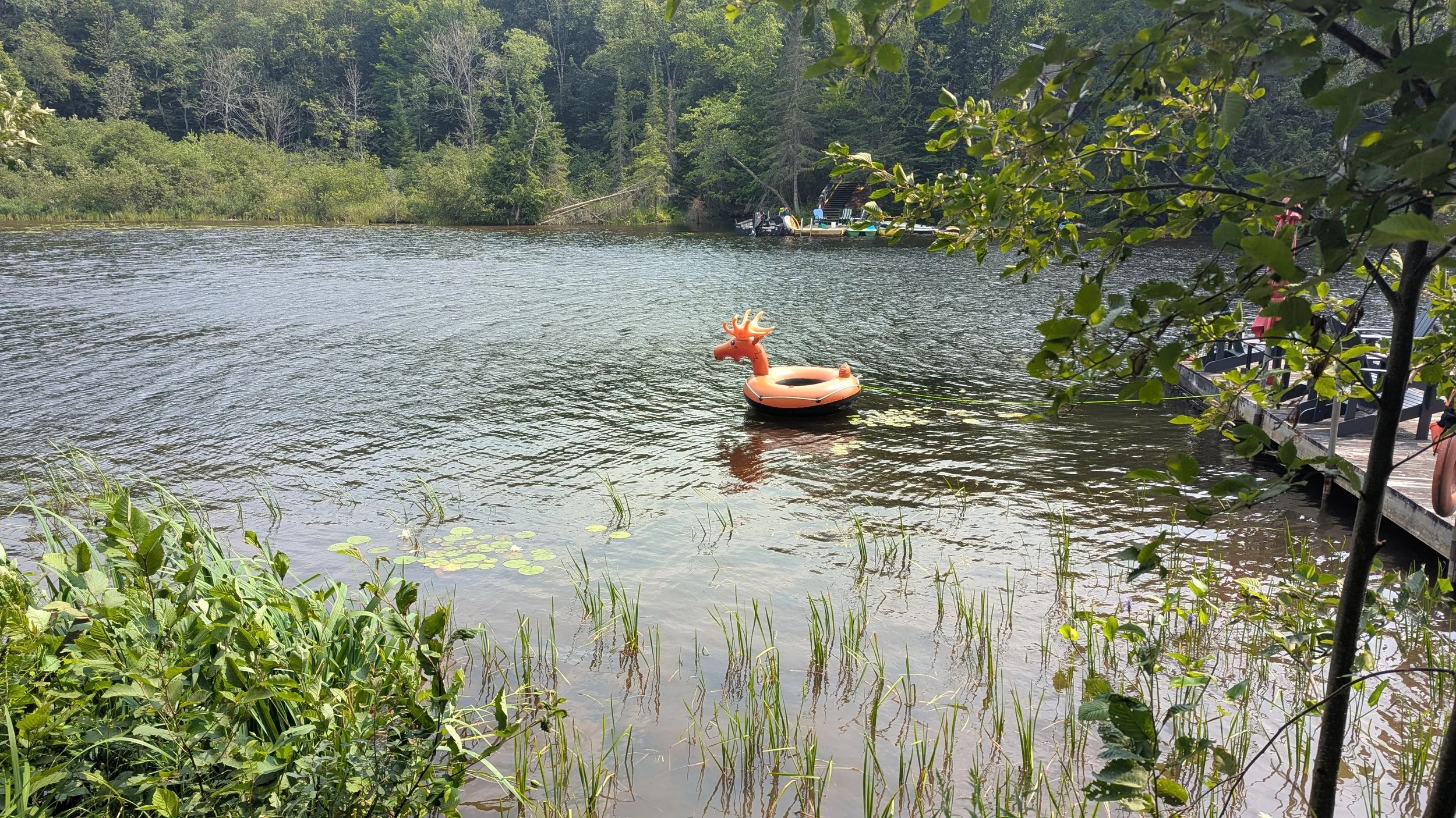 This was my first visit since some recent renovations so I thought it prudent to bring a ‘House Re-Warming’ gift. Considering the fact I had just written about animal floats being perfect for cottages I brought up a moose shaped floatie.