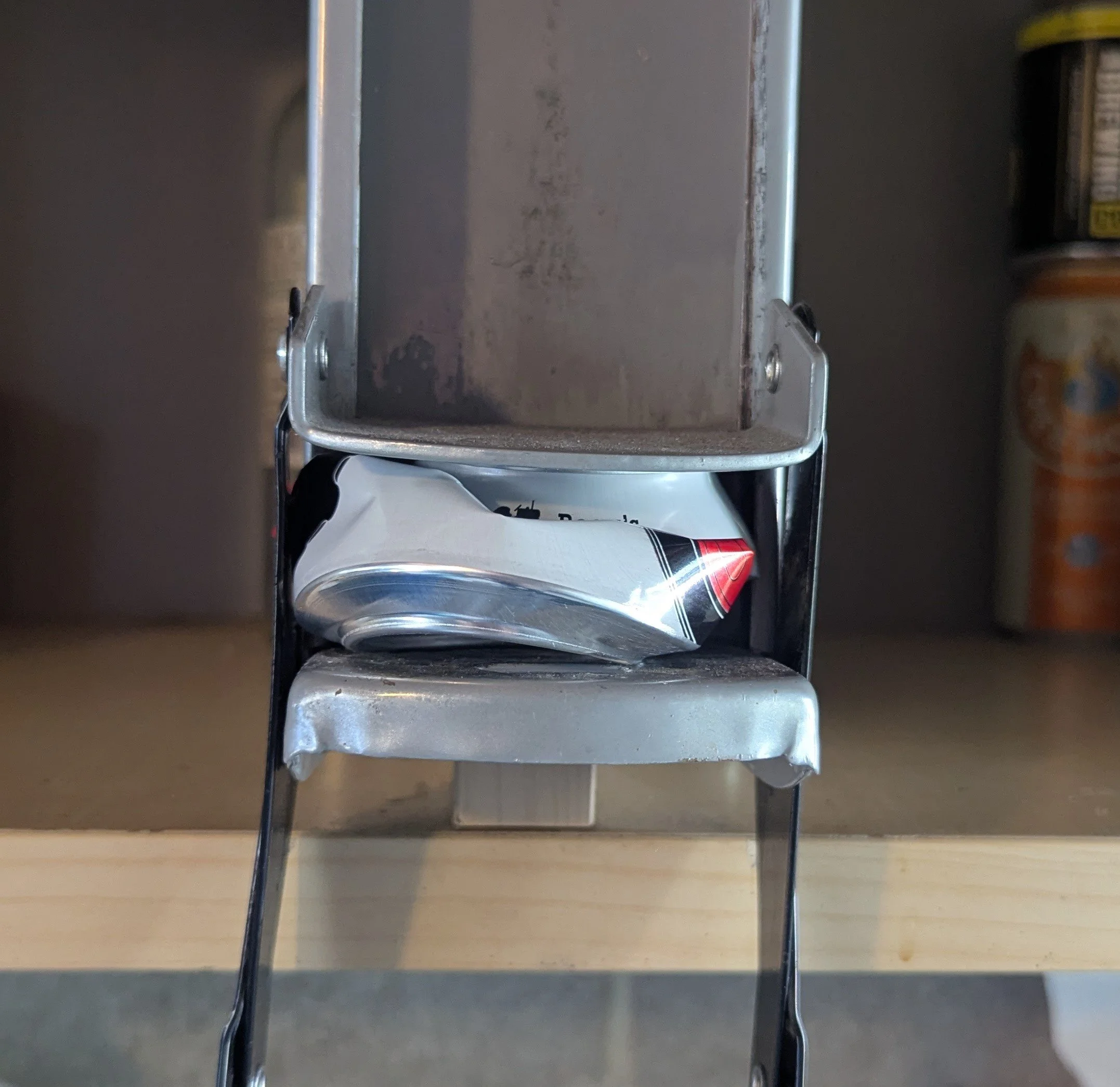 Now, in this age of technological advancement, I urge anyone wishing to flatten their empties to install a manual wall-mounted can crusher.