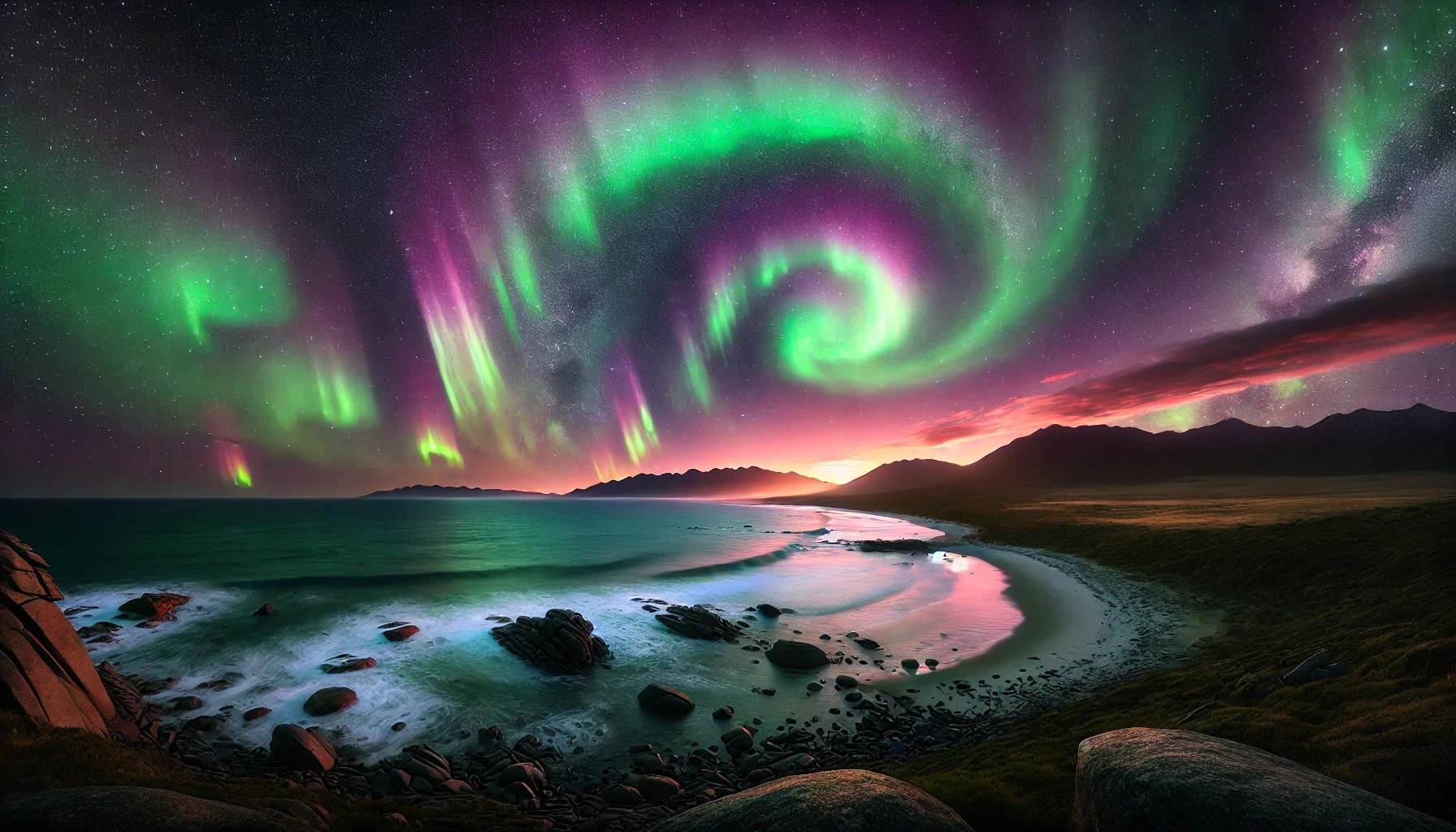 Auroras are most commonly observed in bands around our globe centred on 67° north and south. Their appearance may take a variety of forms, from mild glows, brighter patches, arcs, rays and spectacular corona auroras which cover much of the sky and diverge from one point. Any colour in the rainbow in any combination is possible but green and red sightings are the most frequent.